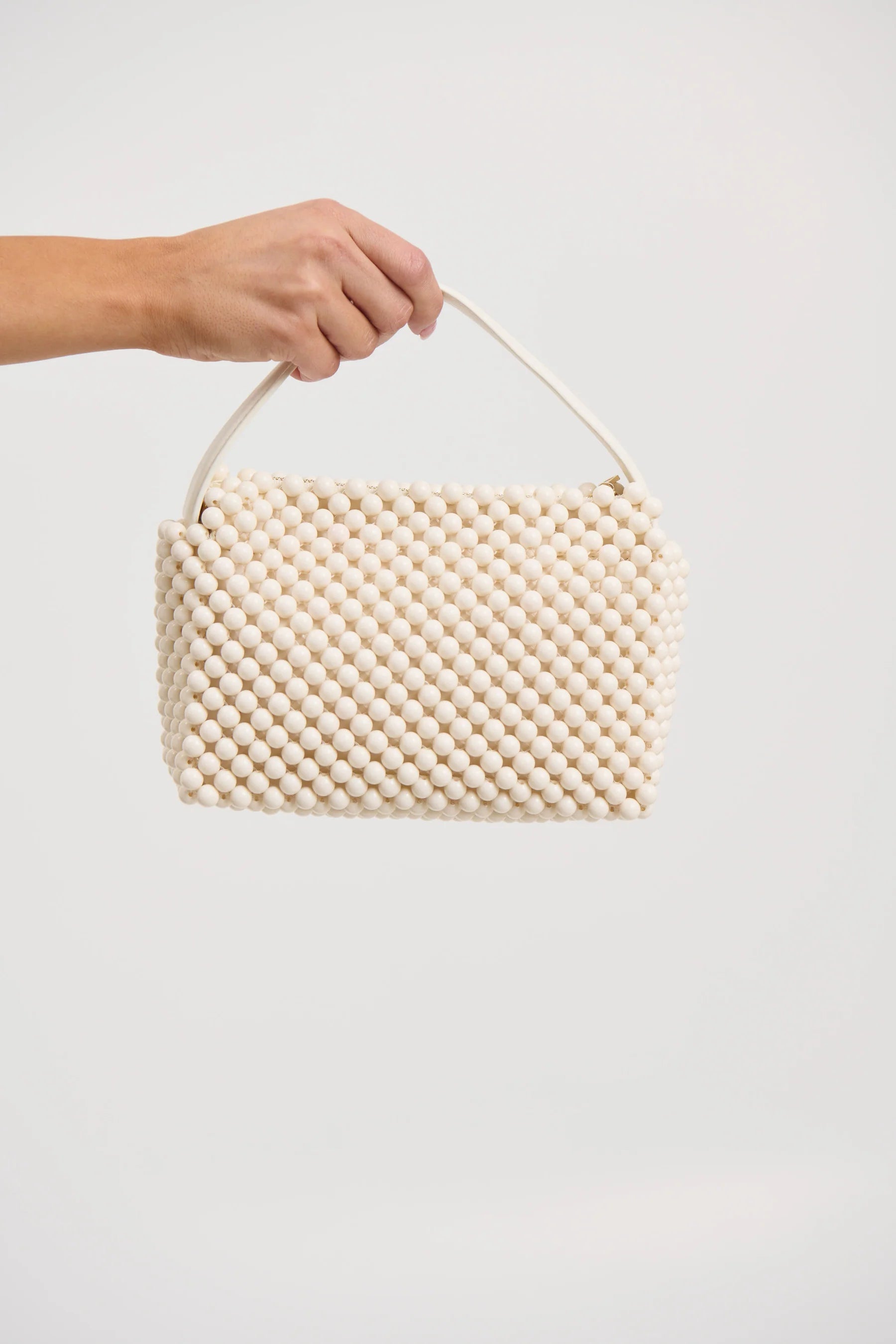 The summer accessory your outfit’s been waiting for. The Jeanie Bag is the perfect blend of playful and polished, featuring an ivory beaded body paired with a smooth ivory leather handle strap. Lightweight and charming with a coastal feel, this handle bag adds instant personality to any warm-weather look.