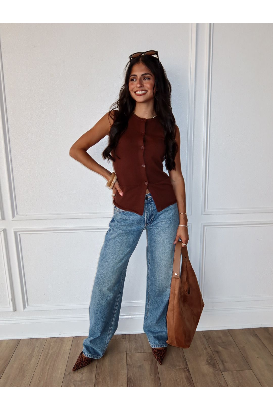 Buttoned Up Sleeveless Sweater - Brown