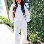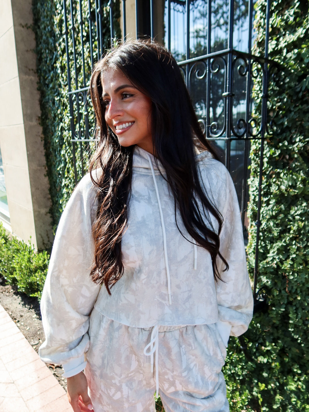 Weekend-ready and cozy in all the right ways. The Off Duty Camo Set features a cropped hoodie and matching joggers in a soft, neutral camo print. Effortlessly cool and made for lounging, errands, or travel days — it’s the perfect mix of laid-back and pulled together.