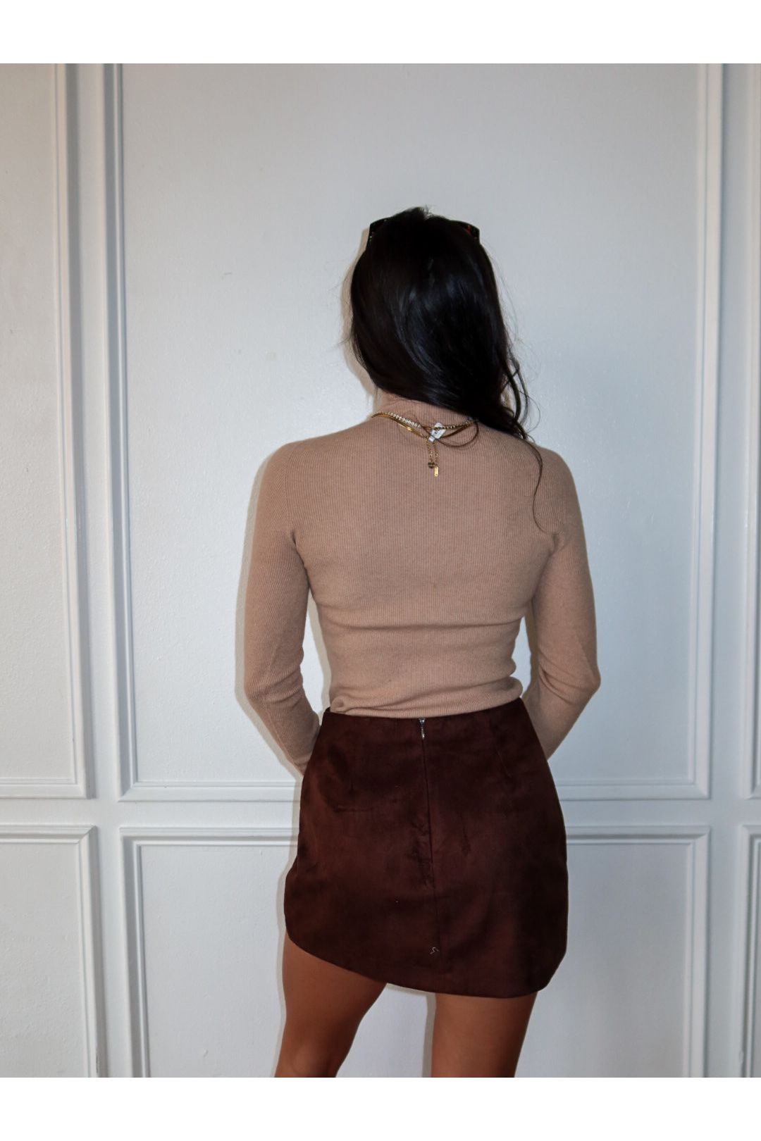 When you're torn between elevated and edgy, the Split Decision Suede Skort settles it. Made from soft espresso faux suede, this asymmetric mini features a sleek one-side slit for just the right amount of leg. It gives the look of a chic skirt with the comfort of hidden shorts—aka your new secret weapon for nights out, brunch dates, and everything in between.
