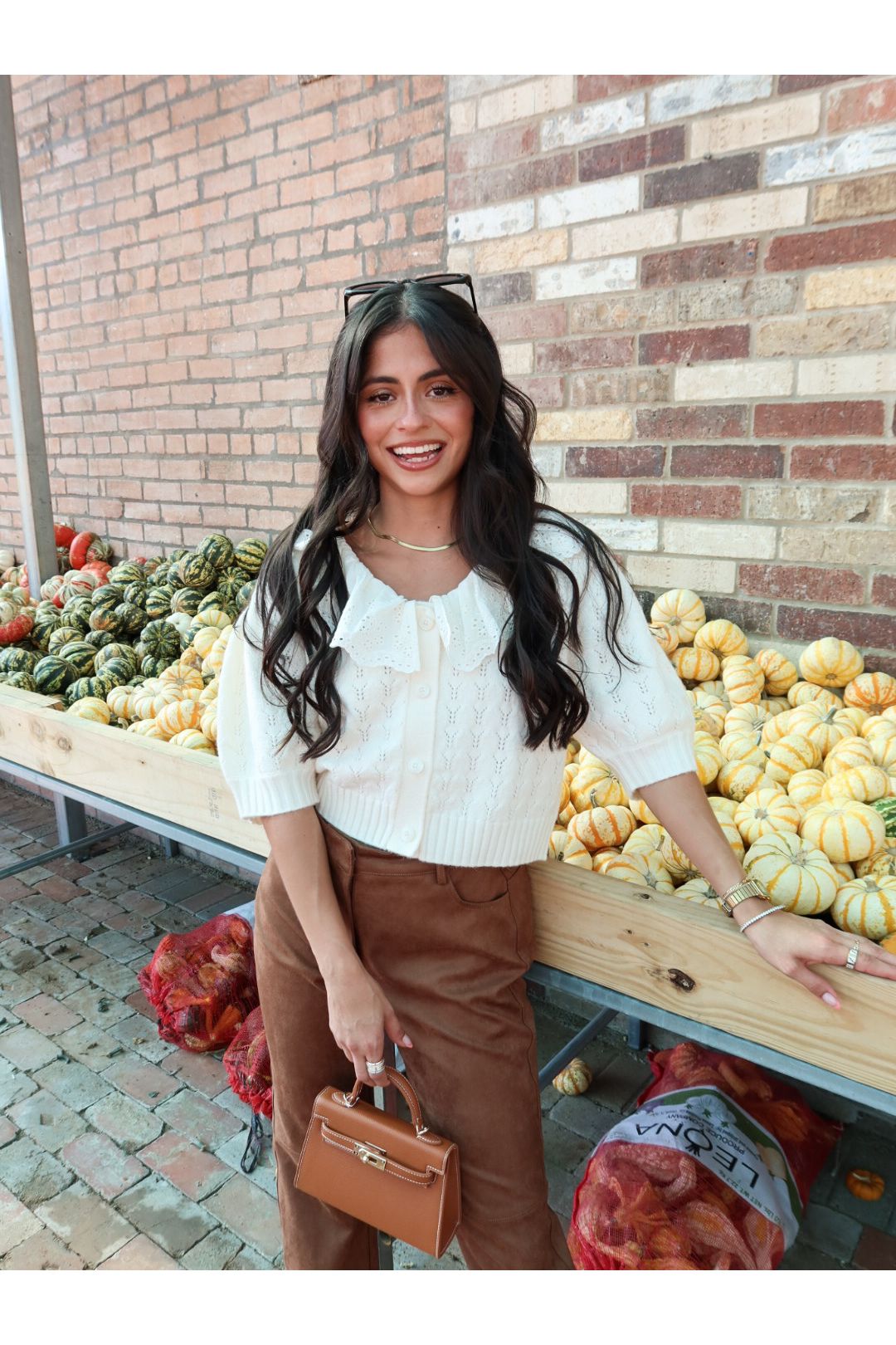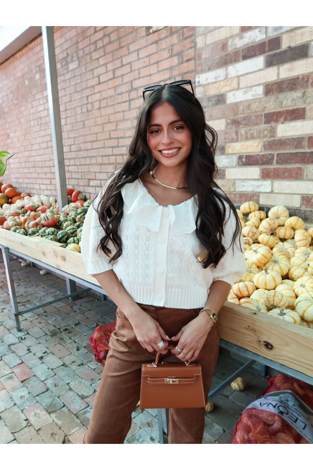 Featuring a delicate lace collar, dainty buttons, and subtle puff sleeves, this cream knit adds a vintage-inspired touch to everything from denim to minis. It’s cozy but polished, casual but charming—a total outfit-maker.
