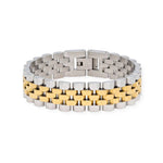 A modern classic with effortless edge. The Hendrix Bracelet features a mixed-metal gold and silver design inspired by a timeless watch-style silhouette. Finished with linked detailing and a stretchy fit, this bracelet delivers structure without sacrificing comfort — polished, cool, and easy to wear every day.