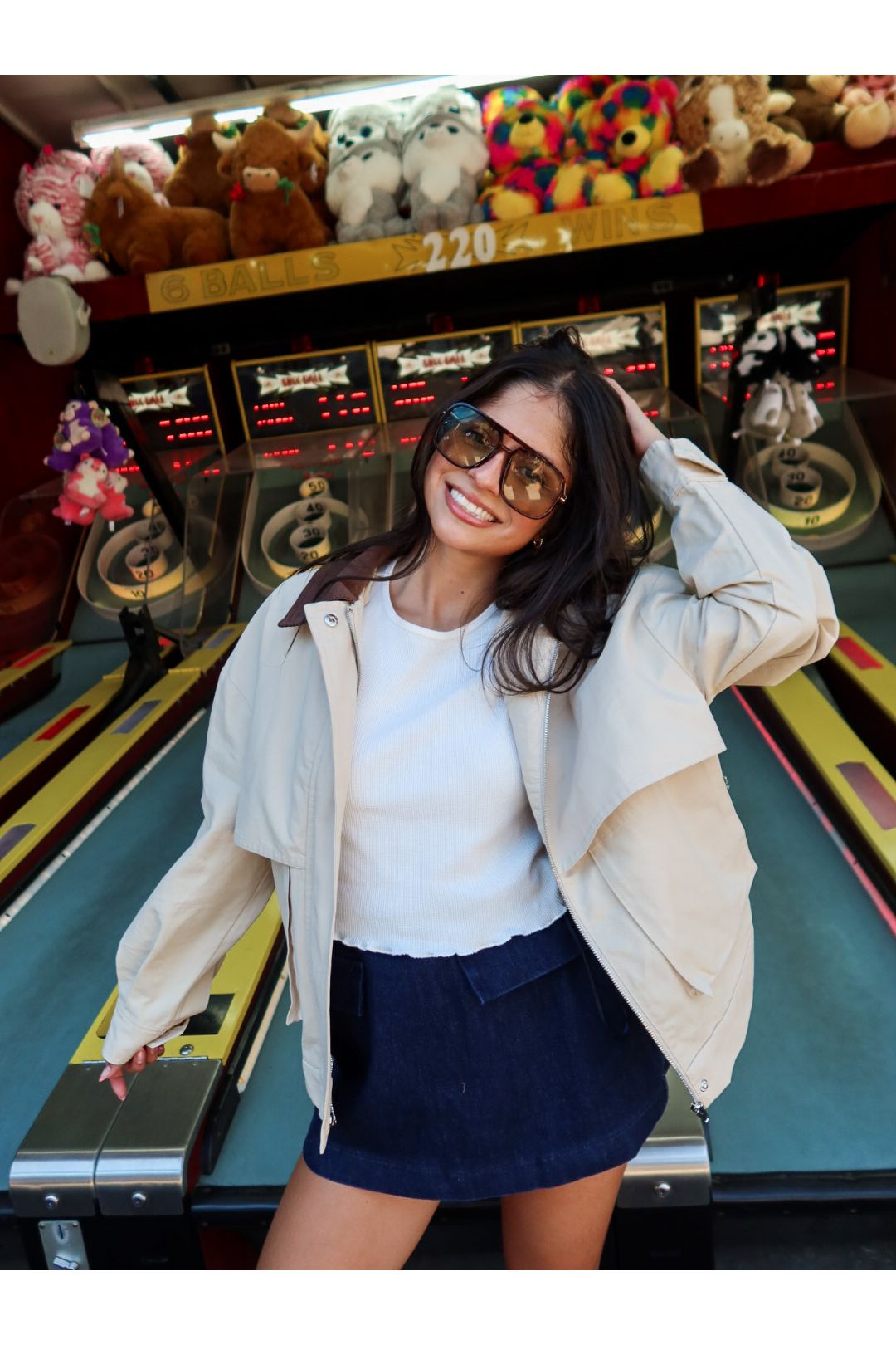 Style Tip: Throw it on over a white tee and wide-leg jeans or layer it with a sweater dress and boots for fall’s coziest combo.