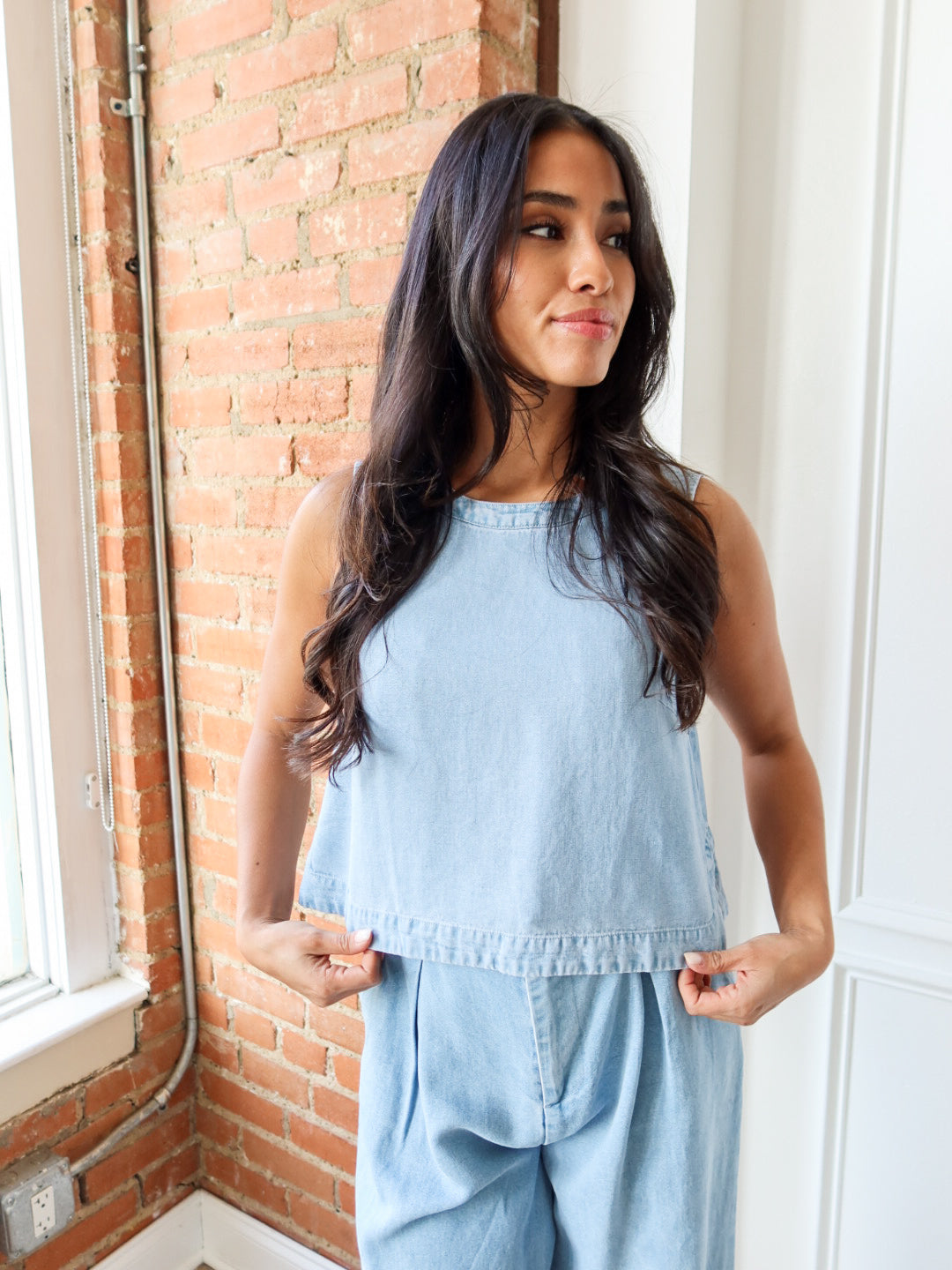 Easy, breathable, and made for everyday wear. The It’s Pouring Sleeveless Top is crafted from ultra-soft 100% lyocell with a light denim look and an airy, relaxed fit. Designed to feel cool and comfortable all day long, this sleeveless silhouette is effortlessly cute and endlessly functional — perfect for warm days, casual plans, and easy layering.
