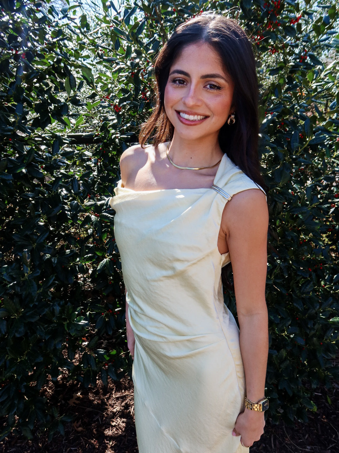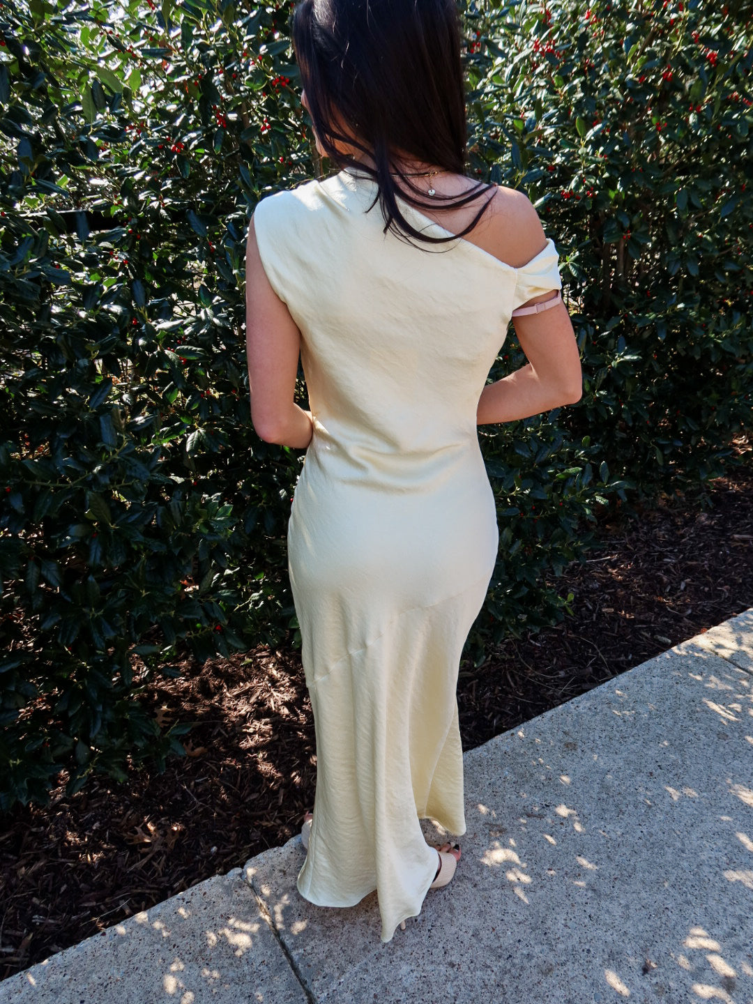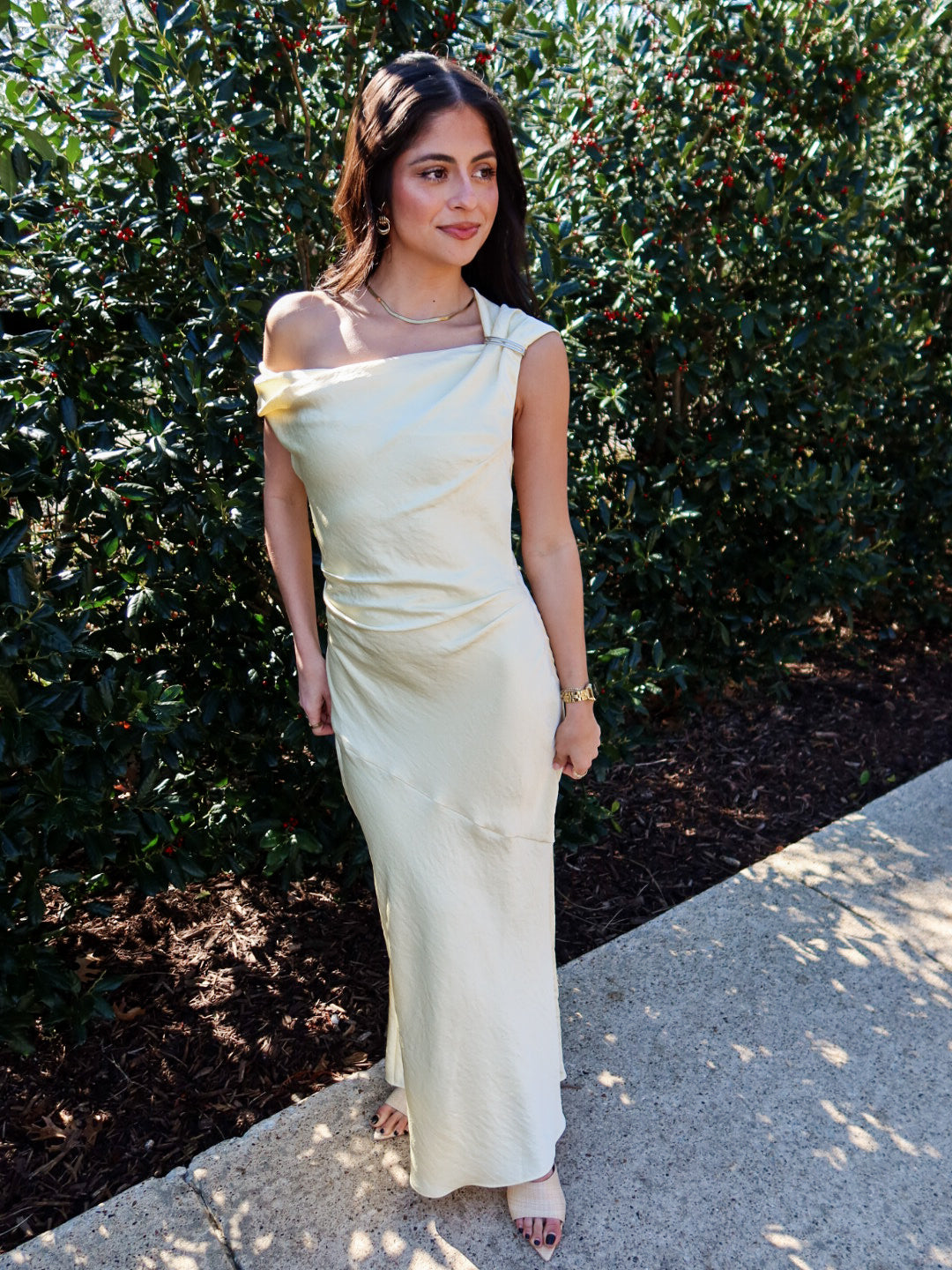 Effortless elegance at its finest. The Hiedra Dress is a stunning butter yellow silk maxi designed to drape beautifully over the body with a loose, flowing silhouette that’s incredibly flattering. Finished with a sleek silver metal decal on one shoulder, this dress strikes the perfect balance between minimal and statement.