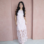 Soft, romantic, and made for special moments. The Blushing Petals Midi Dress features delicate floral lace embroidery layered over a blush pink base, finished with subtle sequin detailing that catches the light beautifully. Designed with a sleeveless silhouette and a refined midi length, this dress feels timeless yet effortlessly modern—perfect for weddings, showers, or any elevated occasion on your calendar.