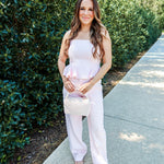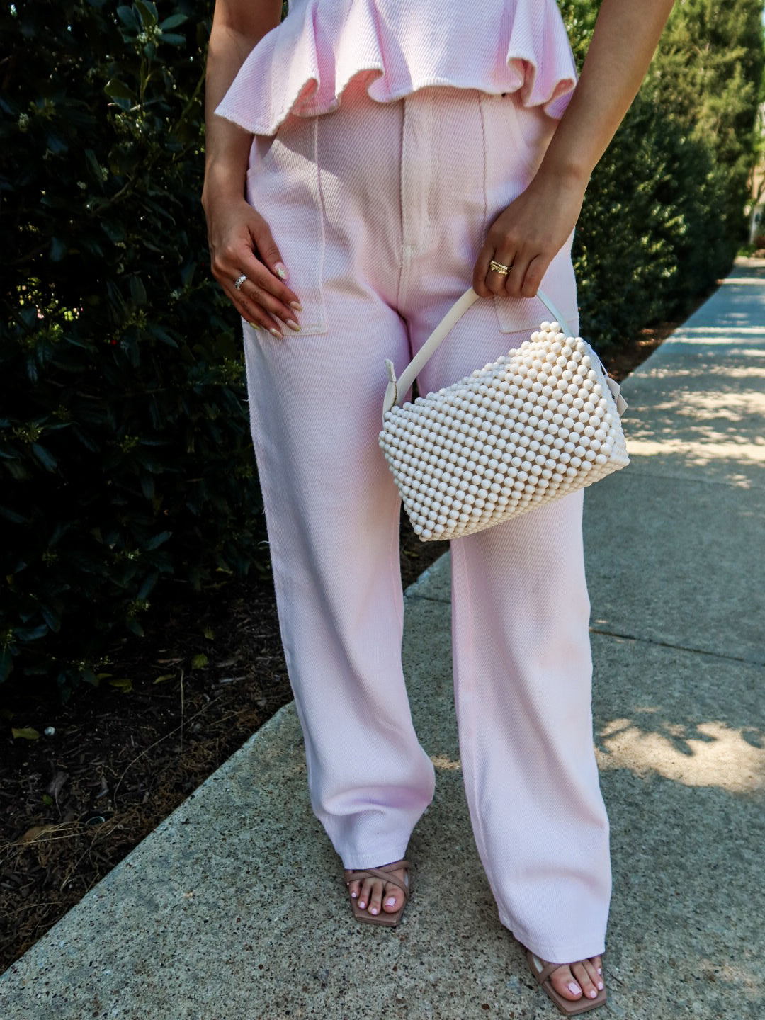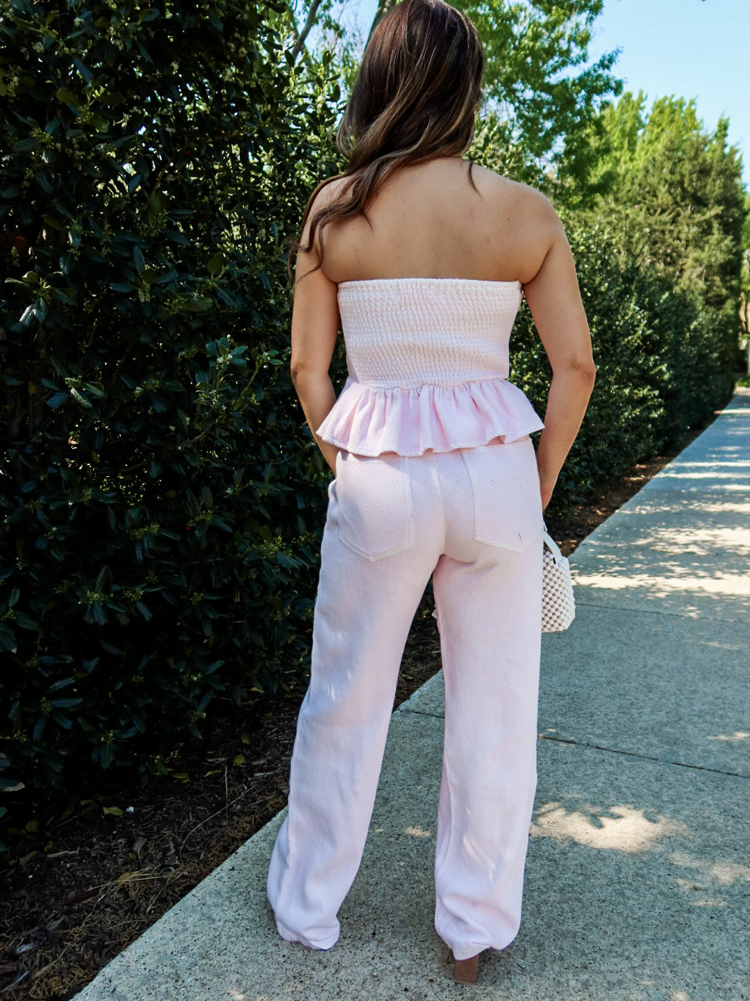 Bold, playful, and made to stand out. The Cotton Candy Denim Set features a textured pink denim that gives the look of soft corduroy without the weight. The matching tube-style corset top creates a structured, flattering fit through the bust, while the oversized low-rise jeans bring a relaxed, cool-girl silhouette.
