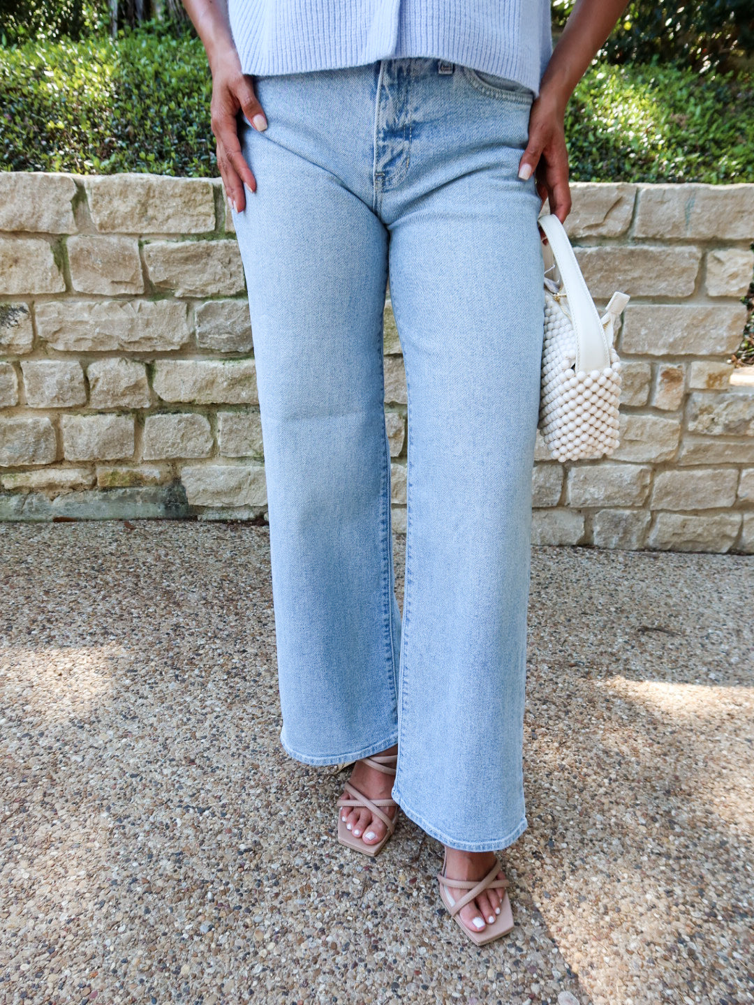 The denim your closet has been waiting for. These Mid Rise Slim Wide Leg Denim Jeans from Just Black Denim are that perfect in-between fit—structured through the waist and hips with a flattering slim leg that opens into an easy wide leg. The light wash keeps things fresh, effortless, and ready for literally anything on your calendar.