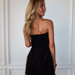 This black piece features a strapless neckline, tailored seams, and built-in shorts that keep things effortless and worry-free. With sleek front patch pockets and a clean, minimalist silhouette, it’s your new go-to for nights out, weekend plans, and anywhere you want to feel put together without trying too hard.