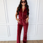 Turn heads and sip boldly in the Crushed It Corduroy Jumpsuit. This sleeveless stunner in deep wine corduroy features a structured silhouette, a flattering wide leg, and a built-in belt buckle to cinch it all together. With its rich texture and vintage-inspired vibes, it's the one-piece wonder you’ll be reaching for all season.
