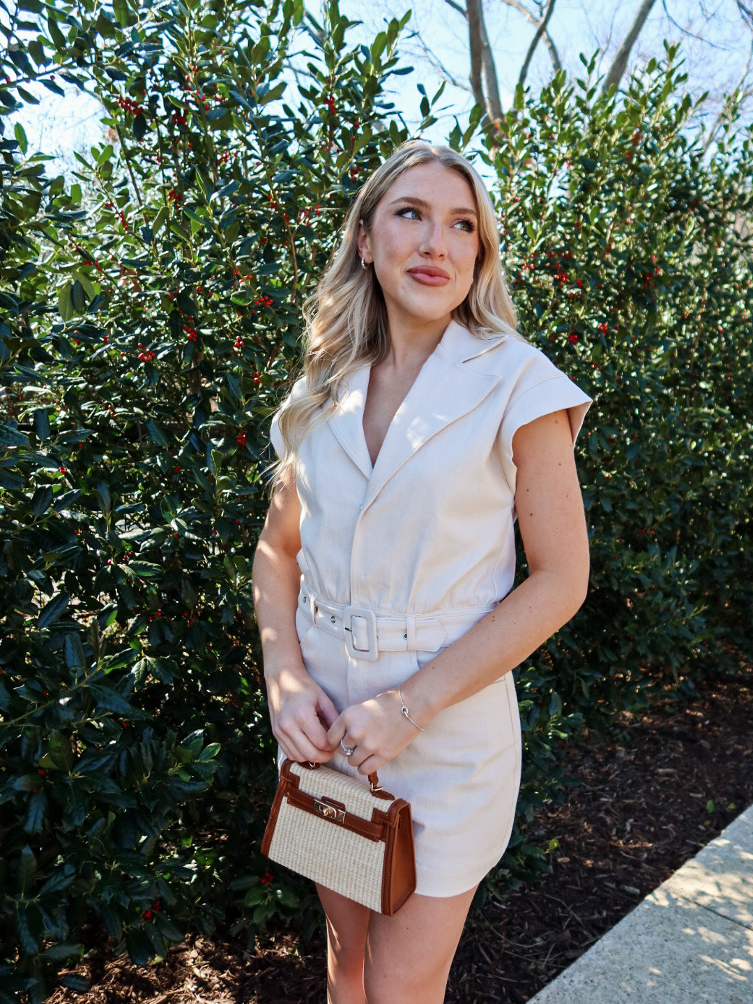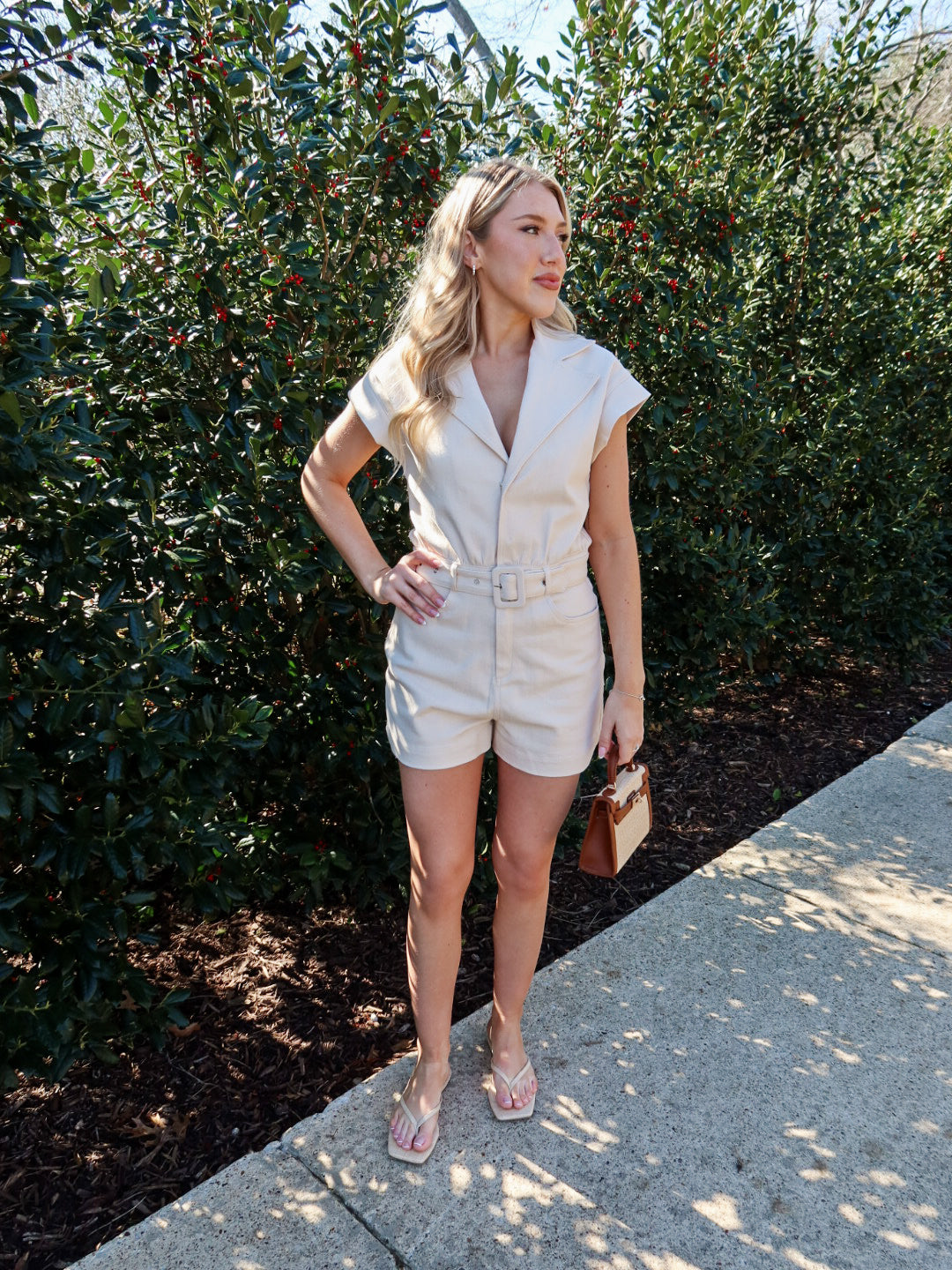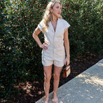 Clean, classic, and effortlessly polished. The Clear Eyes Belted Romper features a soft cream hue with short sleeves, a tailored short silhouette, and a removable belt that cinches the waist just right. Designed to feel easy yet put-together, this romper gives you a flattering shape without sacrificing comfort.
