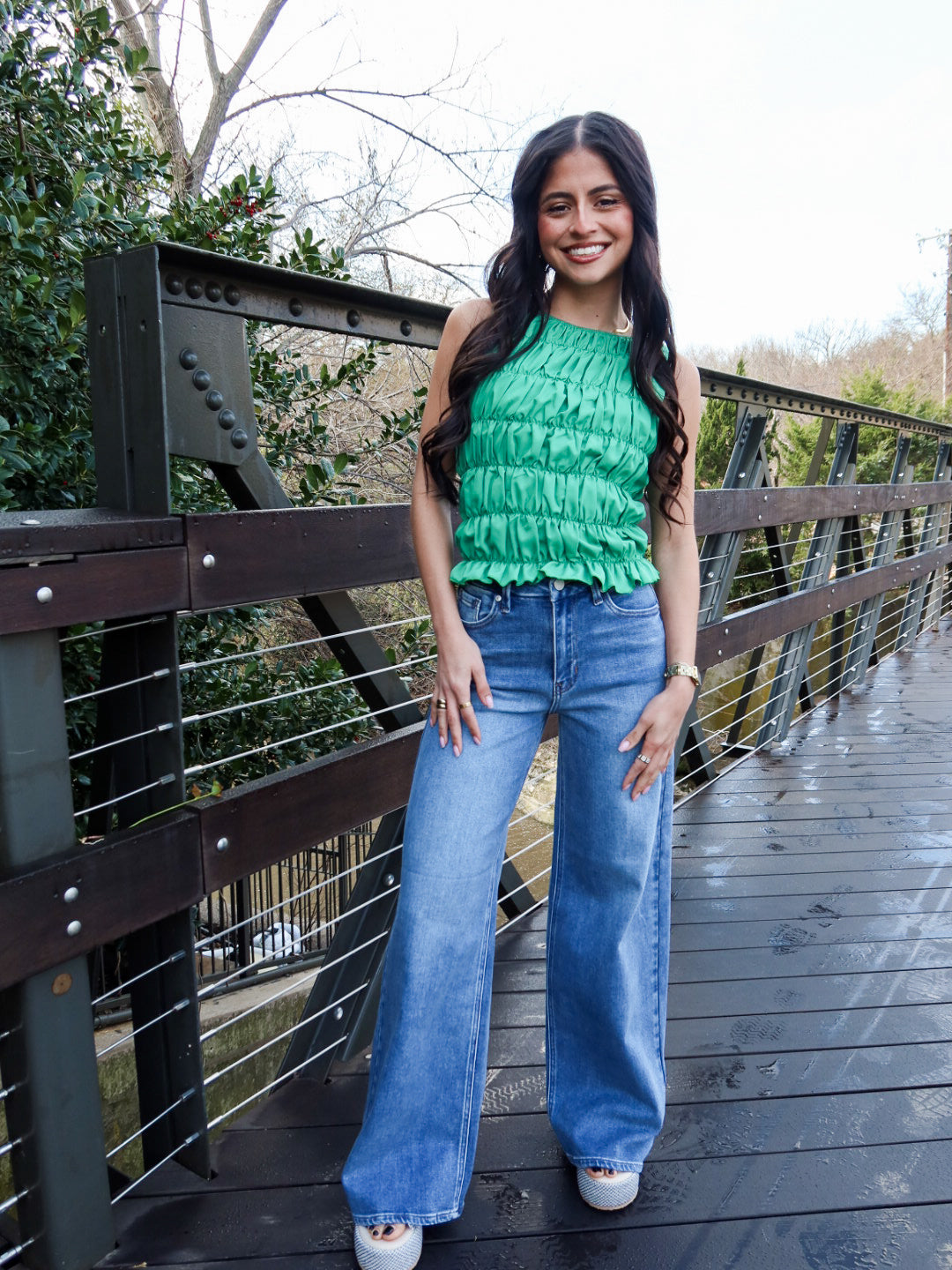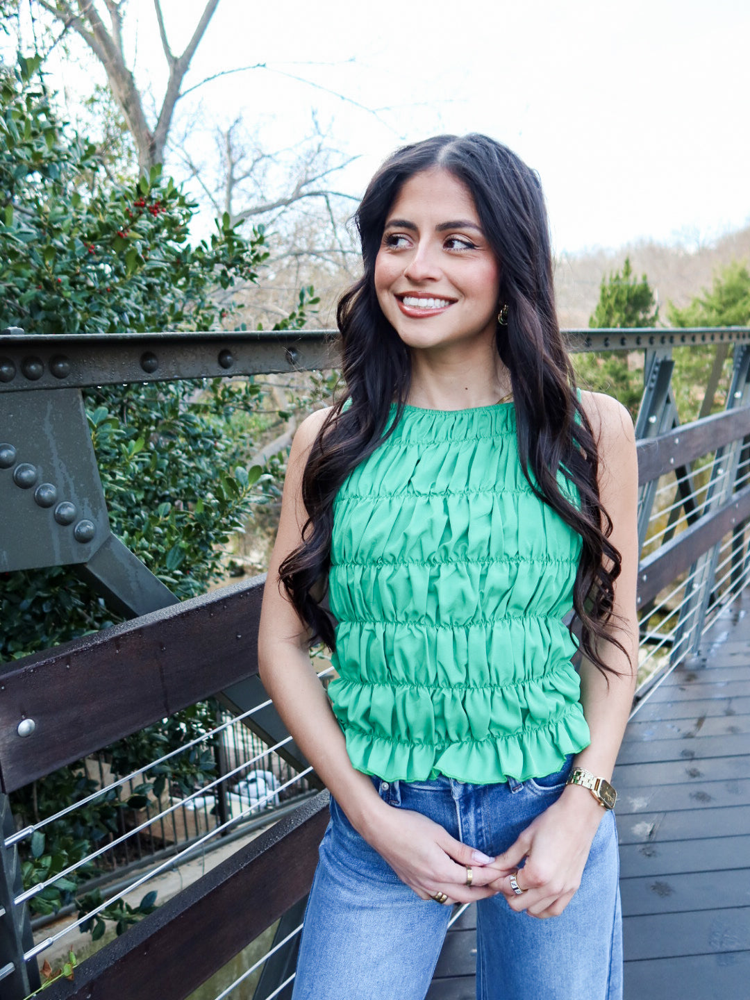 The tank that does the most (in the best way). The Ripple Effect Tank features all-over ruching with soft ruffle texture that hugs your body while staying super stretchy and breathable. Designed in a normal, easy-to-wear length, this tank is flattering without feeling tight and lightweight enough for the hottest days. Available in dusty pink and kelly green — because one just isn’t enough.