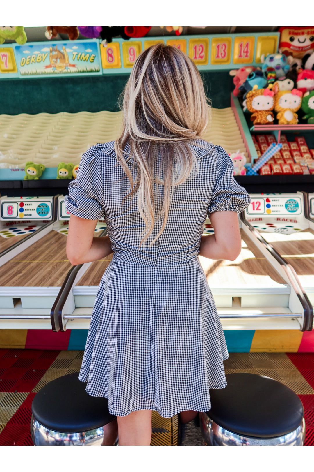 Sweet with a side of sass, the Check Me Out Mini Dress gives classic gingham a bold twist. Designed in a black and white checkered print, this mini features an oversized ruffle collar that brings just the right amount of drama. The flattering silhouette makes it an easy go-to for brunch dates, tailgates, or any “cute but casual” moment.