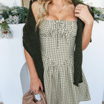 A little country, a little cool girl. The Sweet Meadow Mini Dress features an olive green gingham print with a smocked back panel for the perfect fit. Its flattering square neckline, thick straps, and flirty mini length make it an easy favorite for brunch, picnics, or casual nights out.