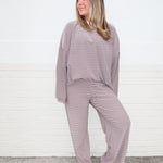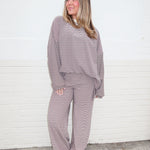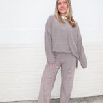 Soft, cozy, and made for slowing down. The Easy Days Lounge Pants are crafted from ultra-soft cotton with a relaxed, easy fit that feels incredible all day long. Designed with a classic striped pattern and a comfortable elastic waistband, these pants are perfect for lounging at home, running casual errands, or styling as a matching set.