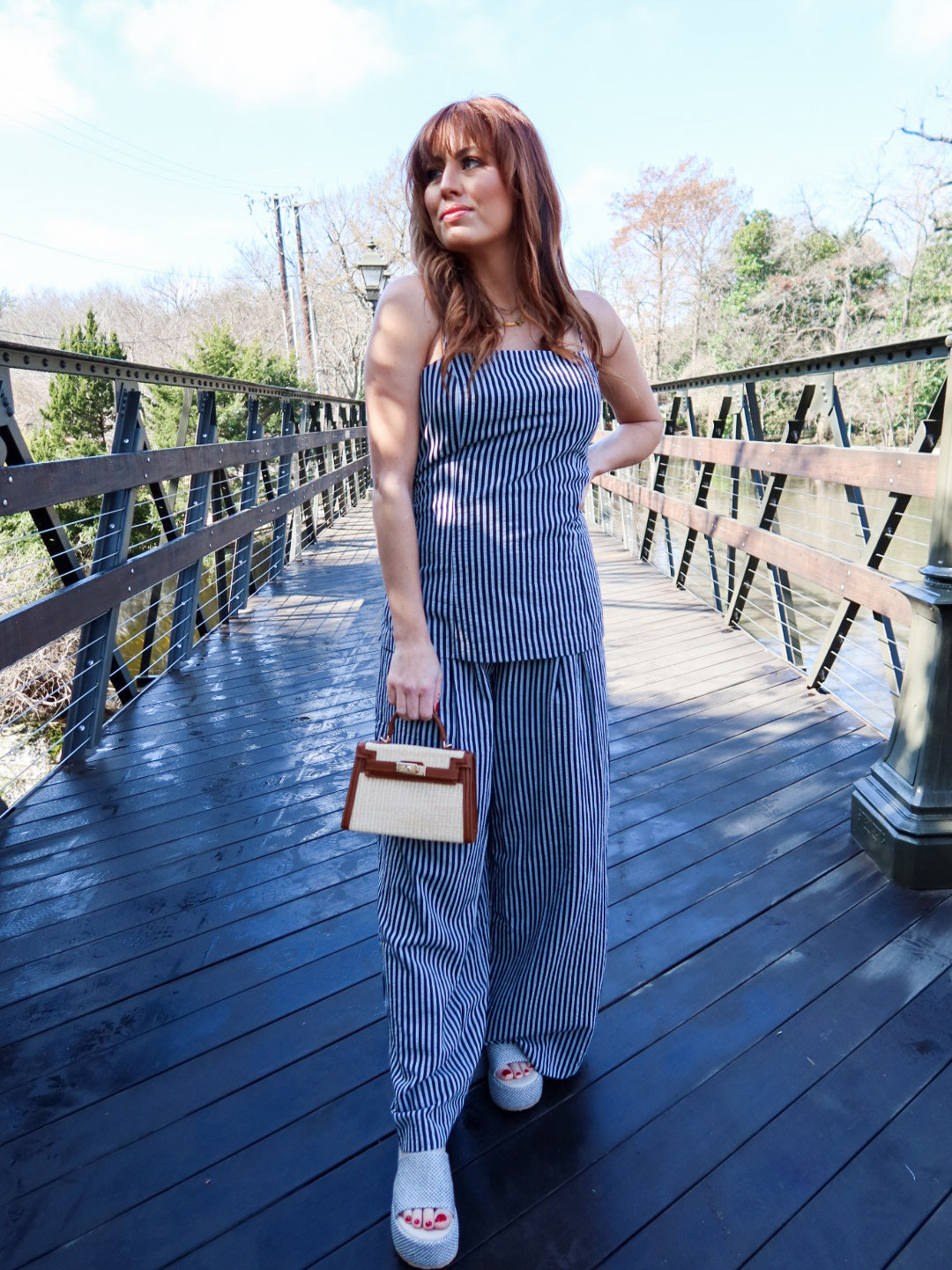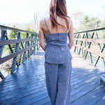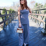 Effortless, elevated, and made for summer plans. The Harbor Lines Set features a navy striped square-neck top with delicate spaghetti straps and a longer, flowy length that pairs perfectly with the matching relaxed-fit pants. Designed to feel light and breathable, this set delivers a polished look without sacrificing comfort.