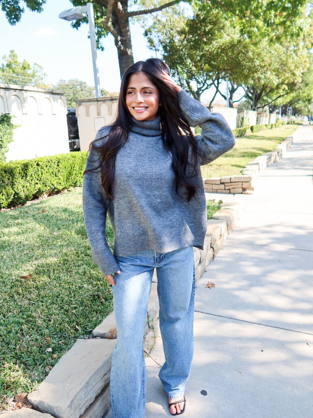 Your cold-weather essential, perfected. The Keep It Cozy Turtleneck features a relaxed fit, soft knit texture, and classic rolled neckline that’s equal parts chic and comfy. In a deep charcoal hue, it’s the versatile sweater you’ll reach for all season long.