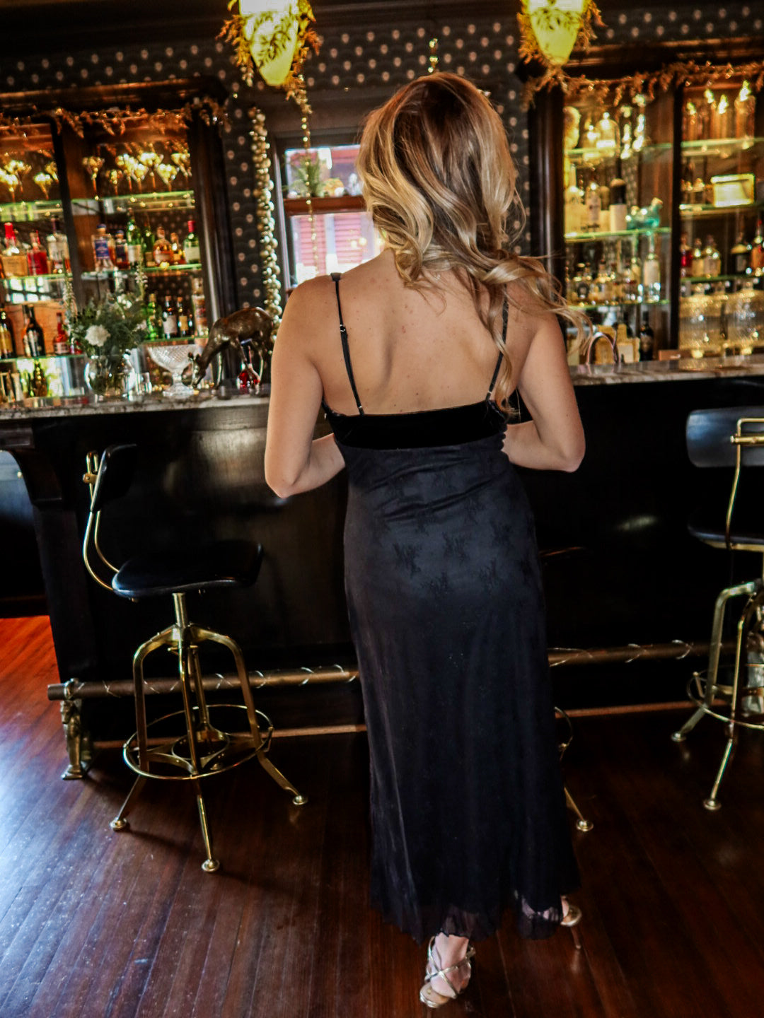 Effortlessly elegant with a modern, refined silhouette — the Guest Dress by NIA is the perfect choice for weddings, holiday parties, and every event where you want to look polished without trying too hard. Designed with a luxe velvet V-neck bodice and a softly patterned lace-overlay midi skirt, it blends rich texture with timeless femininity. The result: a sleek, romantic dress that always makes an entrance.