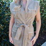 Army green color with contrast white piping