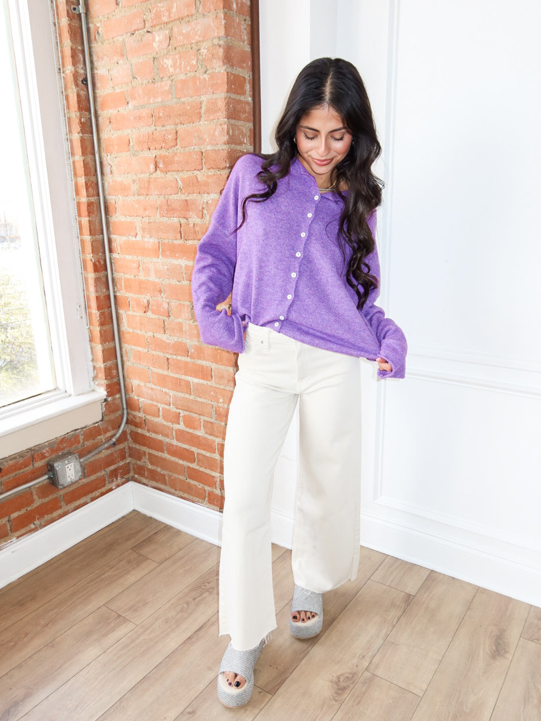 Soft, sweet, and effortlessly cozy—the Piper Cardigan in purple is the layering piece your wardrobe’s been waiting for. With its lightweight knit, classic button-up front, and dreamy pastel hue, this cardigan adds a feminine touch to any look. Wear it on its own or throw it over your favorite tank or dress for an easy, polished finish.