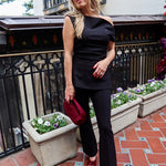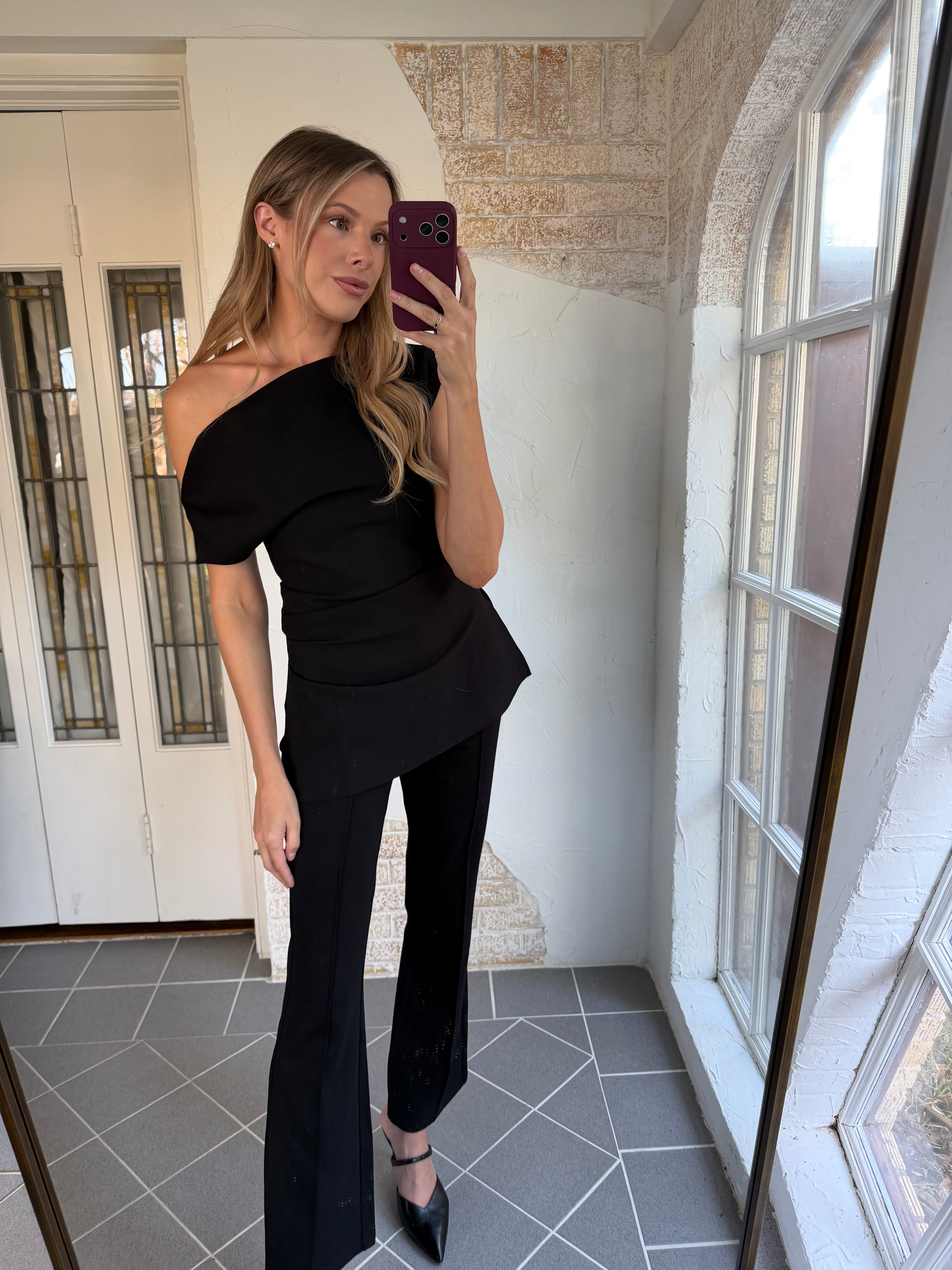 The set that means business — but make it chic. The Power Move Set features an asymmetric one-shoulder top with a sleek, sculpted fit and matching ponte pants designed with a front pleat and side zipper. Tailored yet stretchy, it’s your go-to look for when you want to feel confident, polished, and just the right amount of extra.