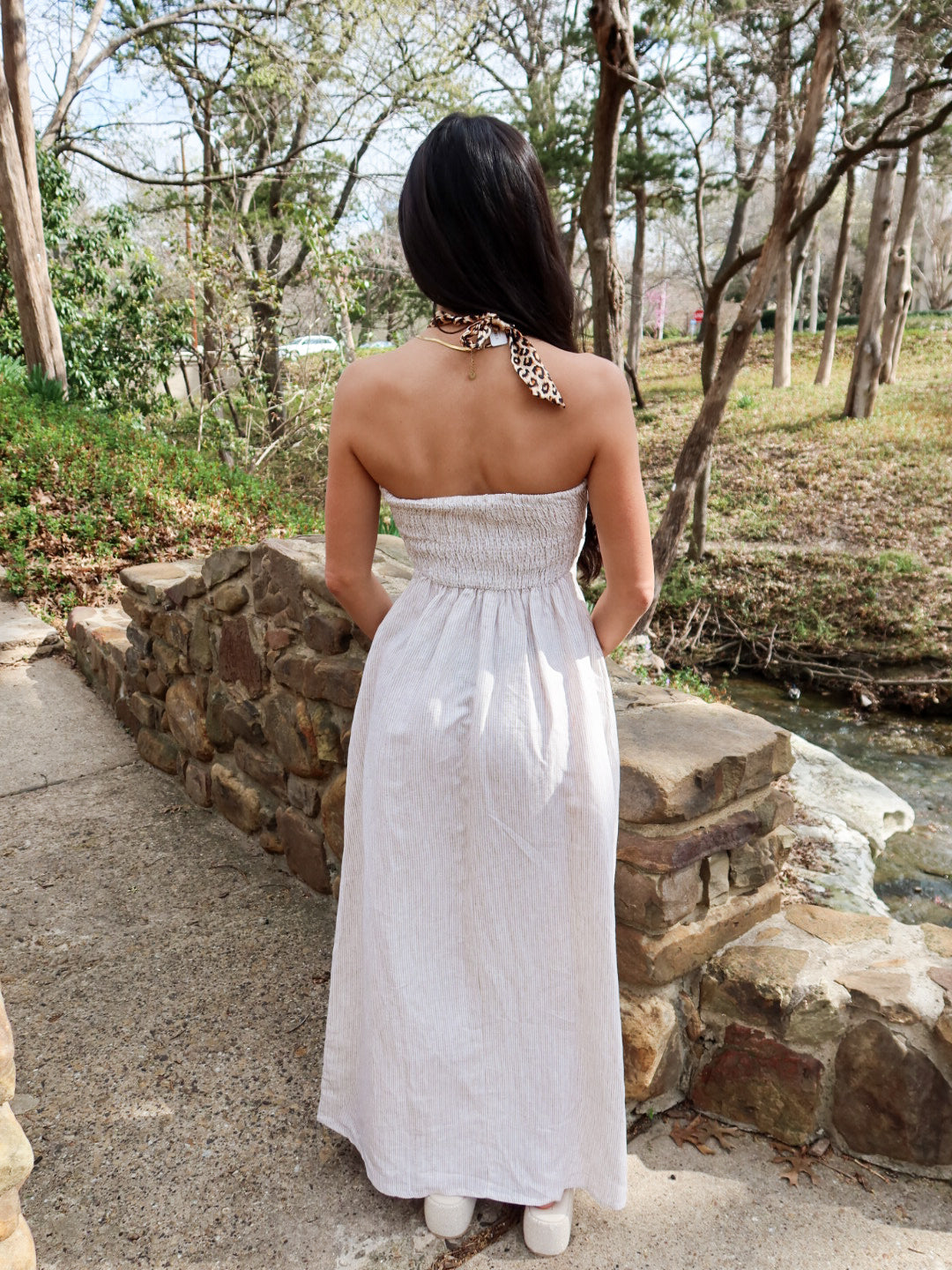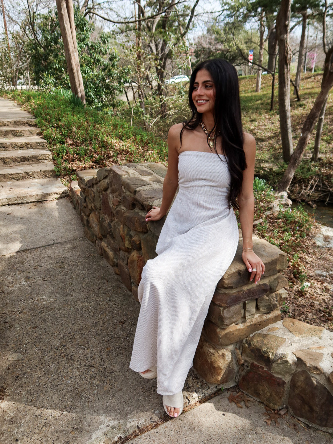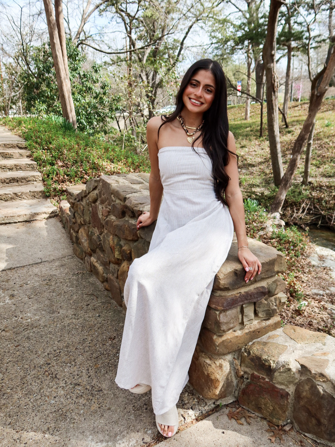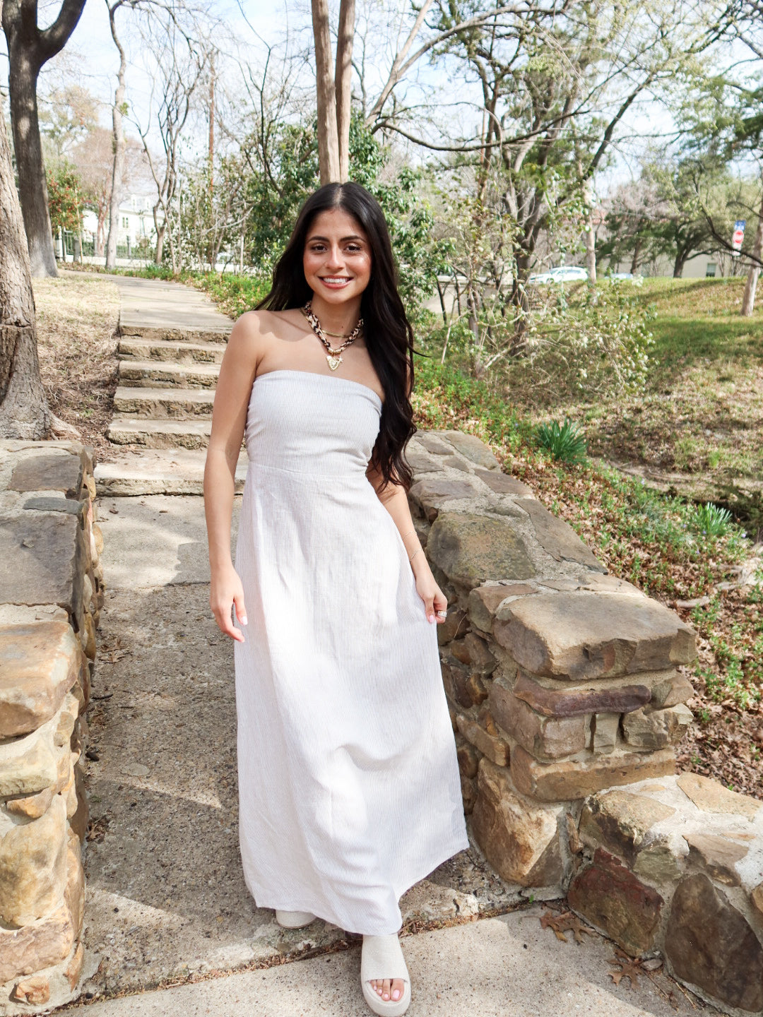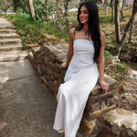 Minimal, flattering, and timeless. The Sienna Strapless Maxi features a clean strapless neckline with a fitted bodice that hugs comfortably through the chest before flowing into an elongated, effortless silhouette. Crafted in breathable linen, this dress keeps things simple — in the most elevated way.