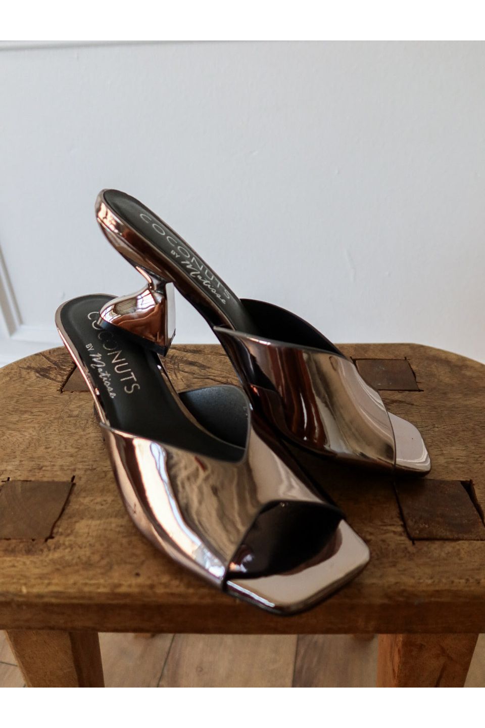 The Soiree Heel by Matisse is your go-to for when the outfit calls for something bold, futuristic, and unapologetically extra. With a sleek chrome finish and a sculptural flared heel, this metallic mule brings all the drama without sacrificing comfort. The open toe and square footbed keep things modern, while the slip-on style makes it easy to elevate any look—no effort required.