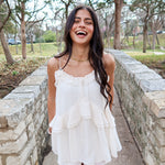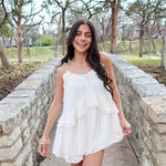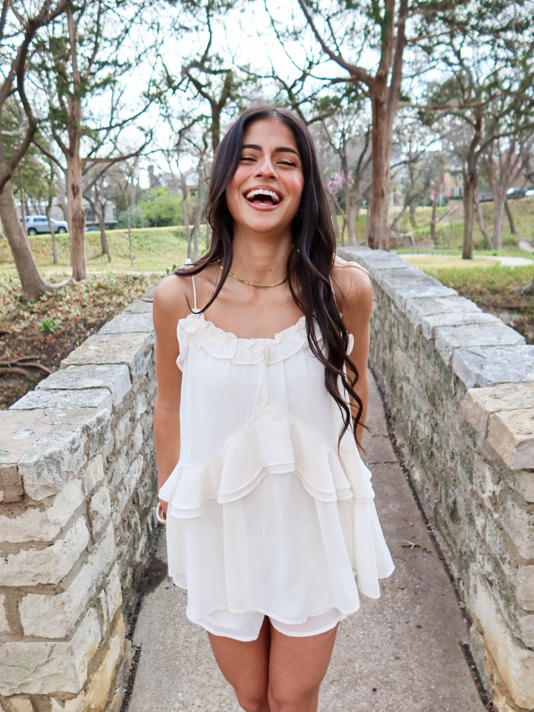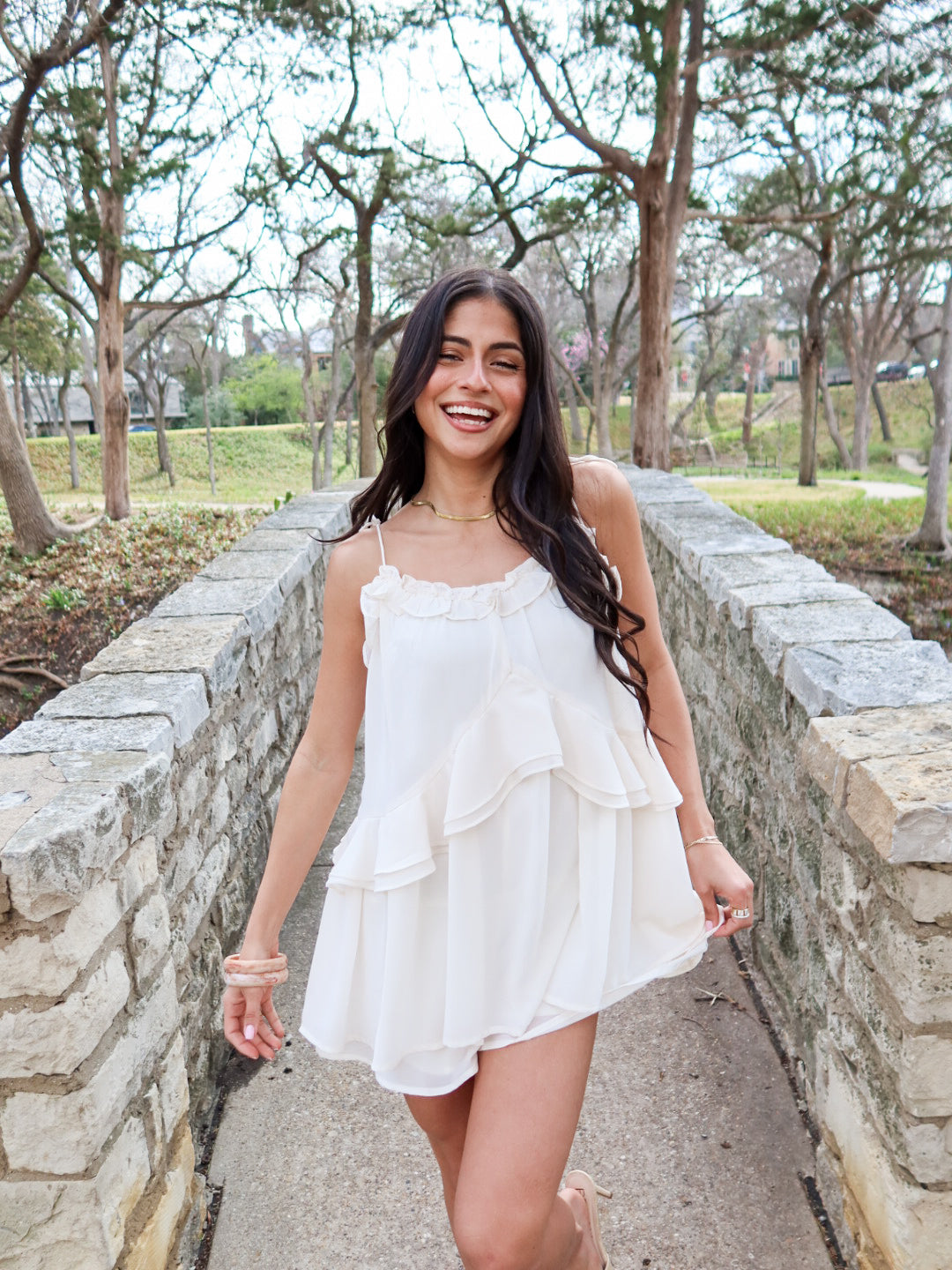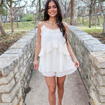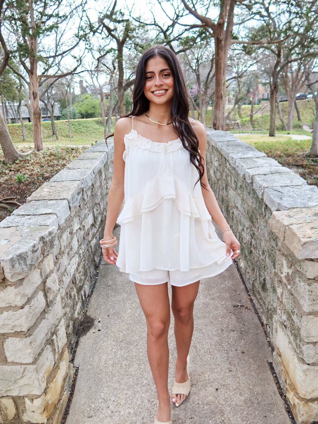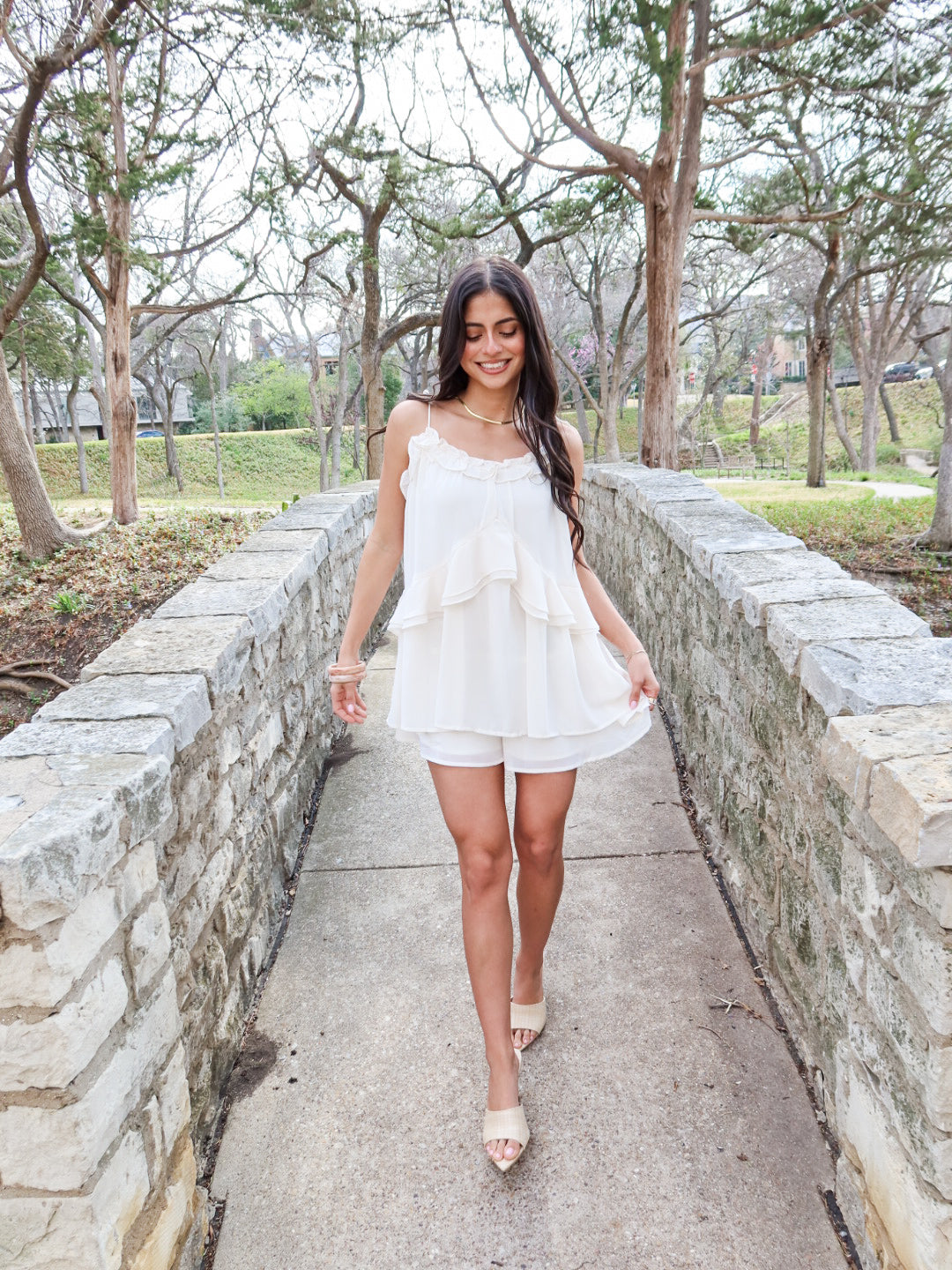 Light, airy, and effortlessly feminine. The Ivory Breeze Romper features a soft cream hue with delicate spaghetti straps and subtle ruffle detailing that adds the prettiest touch of movement. Designed in an easy mini silhouette, this romper feels lightweight and breezy while still flattering in all the right places.