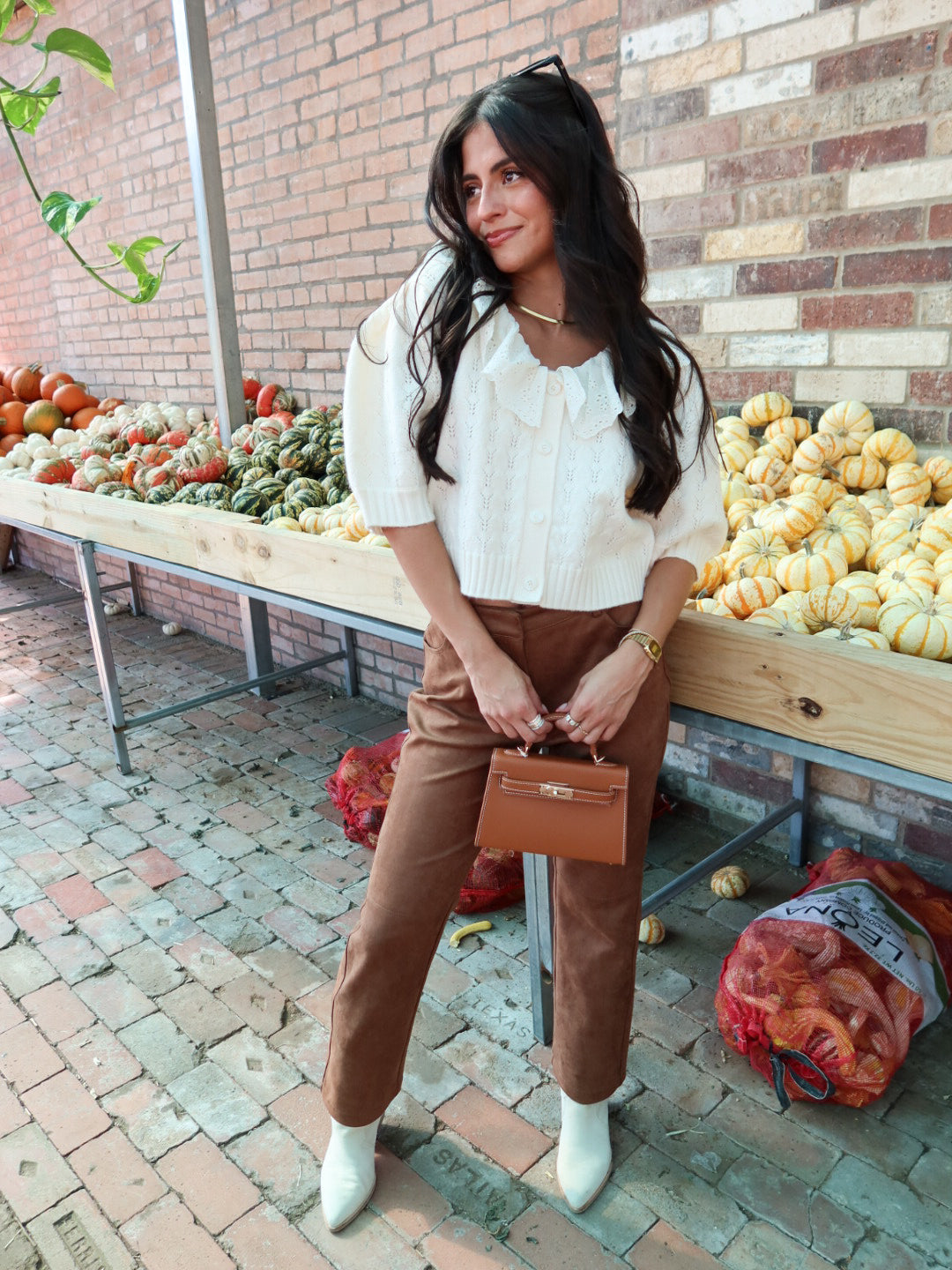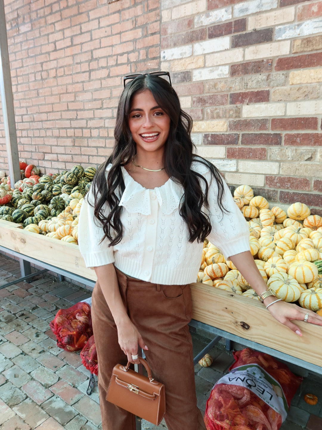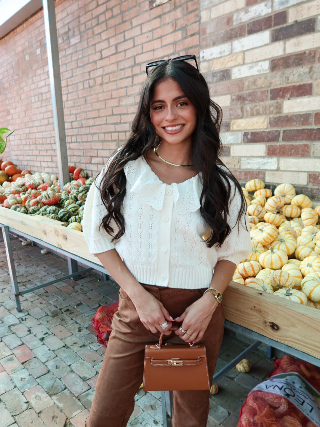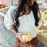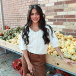 Featuring a delicate lace collar, dainty buttons, and subtle puff sleeves, this cream knit adds a vintage-inspired touch to everything from denim to minis. It’s cozy but polished, casual but charming—a total outfit-maker.